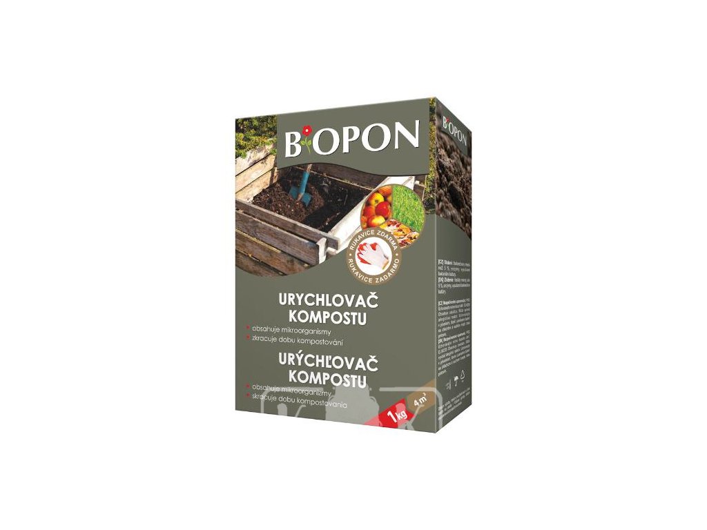Dávkovanie: 200 g na každých 20 cm vrstvy kompostu; balenie 1 kg postačí približne na 4 m³ bioodpadu