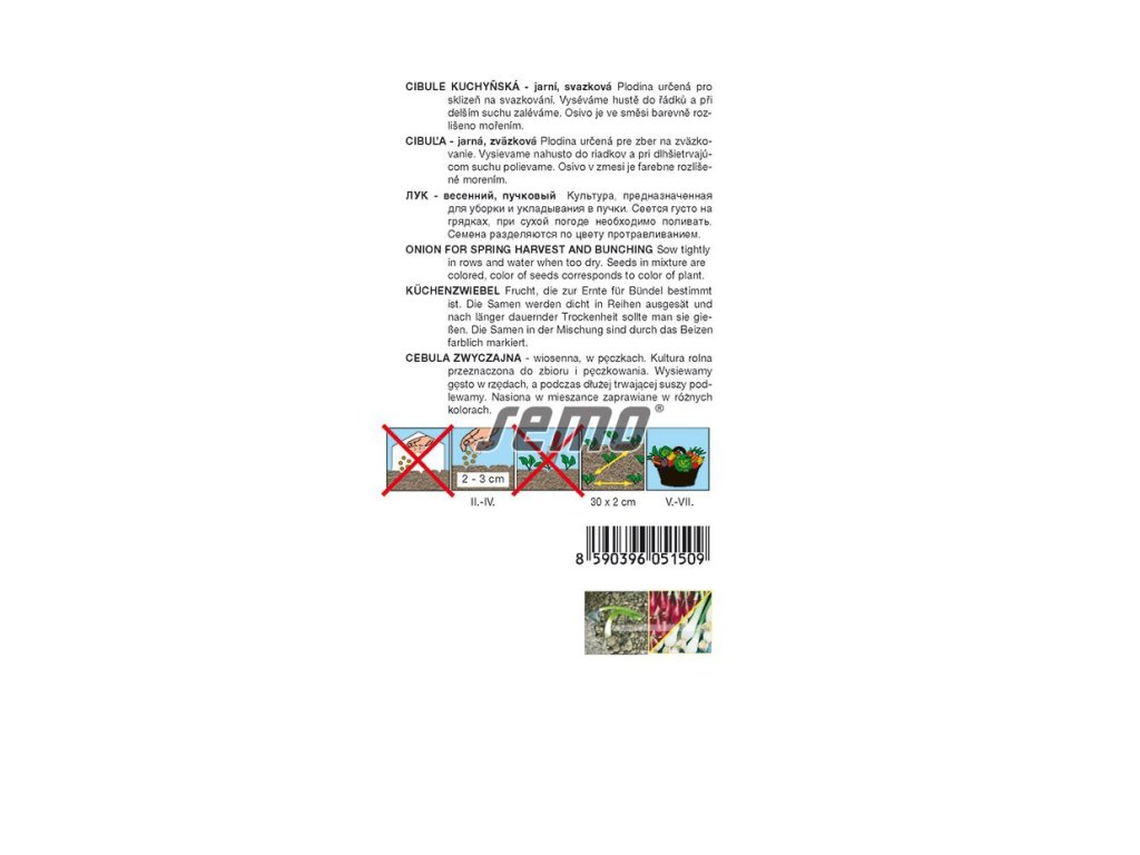 Zmes červenej a žltej kuchynskej cibule určená na hustý výsev do riadkov a zber v mladom štádiu ako lahôdková zelená cibuľka. Osivo je farebne odlíšené podľa farby budúcich cibuliek, čo uľahčuje prehľadnosť pri výseve.