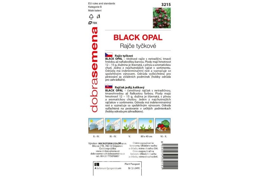 'BLACK OPAL' je tyčkové čerešňové rajča s hmotnosťou plodov 12 – 15 g. Dužina je šťavnatá, s plnou a aromatickou chuťou. Patrí medzi najchutnejšie čerešňové rajčiny v sortimente. Odroda má neobmedzený (indeterminantný) rast a vyznačuje sa spoľahlivým výnosom. Je šľachtená na pestovanie v určitých podmienkach a odporúča sa najmä pre hobby pestovateľov. Vhodná na pestovanie v skleníku aj na poli.