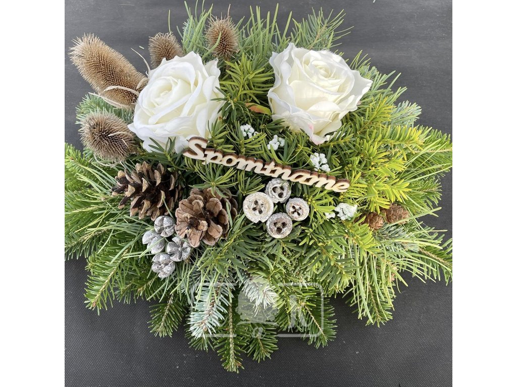 Smútočná ikebana je ručne vytváraná priamo u nás v kamennej predajni z čerstvej živej čačiny, upevnená na brezovej doštičke a doplnená o prírodné dekoračné prvky ako sušené kvety, plody rastlín, konáriky či drobné drievka.